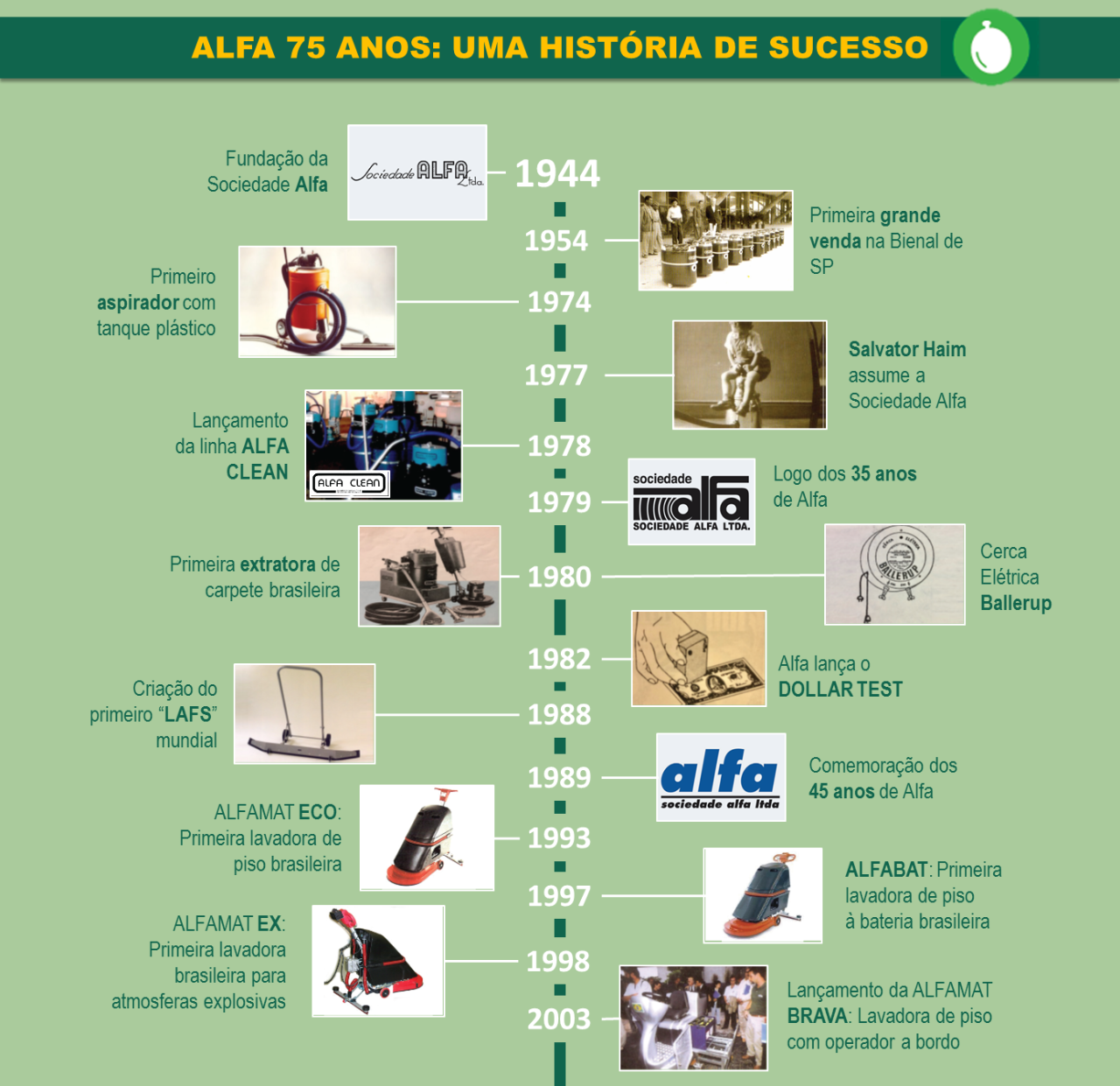 Em 1944, foi fundada a Sociedade Alfa, uma das mais antigas e tradicionais empresas do setor de limpeza profissional do Brasil.